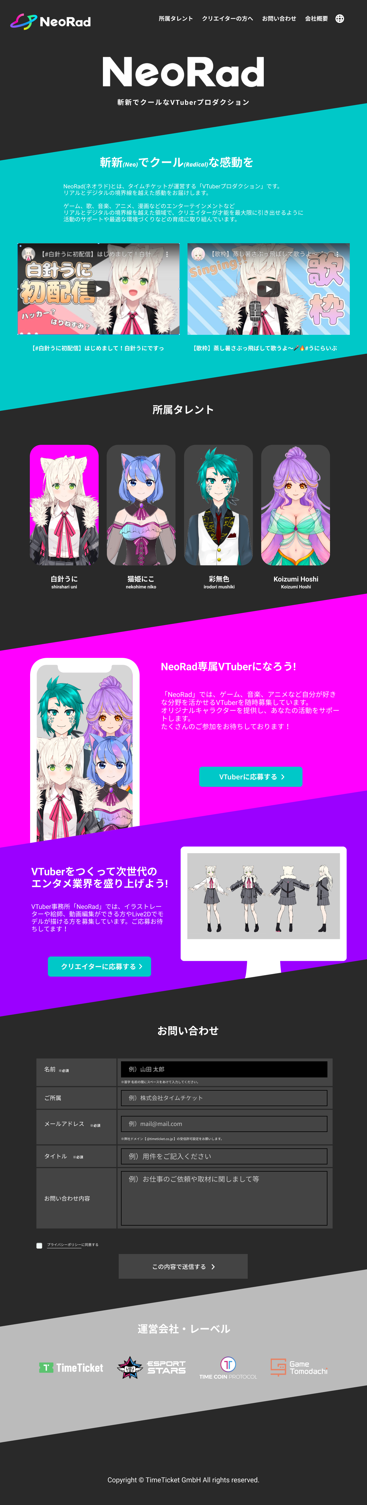 NeoRadはTimeTicket GmbH(タイムチケットの子会社)が運営するVTuberプロダクションです。