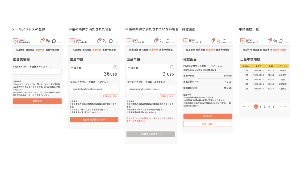 出金申請手続きの画面設計