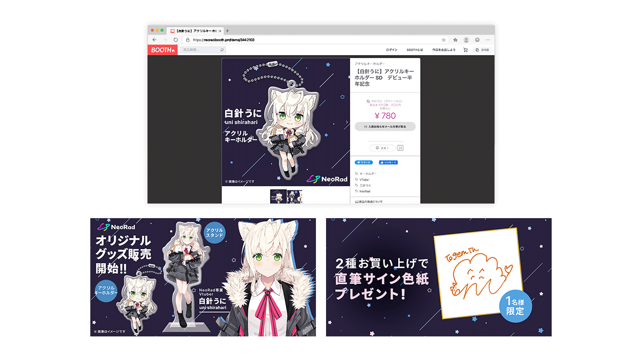 決まった企画を制作するだけではなく、ロゴをVTuberのタレントと一緒に考えたりグッズ制作や販売サイトの相談を受けました。